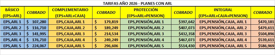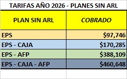 Atención Usuarios : Estos son los precios de los aportes para el 2026 (tarifas 2026 y tarifas 2026 sin ARL) que regirán a partir del 01 de enero, de acuerdo al incremento del SMMLV. En caso de no estar de acuerdo con este incremento, le invitamos a solicitar el retiro de forma gratuita en este enlace.